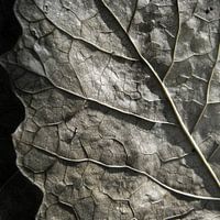 Dit prachtige kunstwerk legt de adembenemende details van een herfstblad vast in een fascinerende macro-opname. De fijne textuur van de bladnerven, gecombineerd met de warme, roestige oranje tinten en contrasterende donkere gebieden, accentueert perfect de natuurlijke schoonheid en vergankelijkheid van de herfst. Een ideaal stuk voor natuurliefhebbers en botanici die de delicate pracht van de plantenwereld waarderen. Het symboliseert de cyclus van het leven en is een unieke blikvanger in elke collectie.