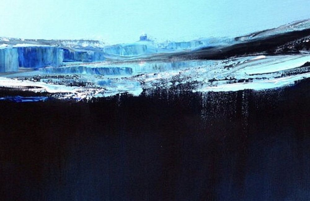 De sfeer zou koud zijn, Antarctica, gletsjers of stukken ijs die elkaar ontmoeten op diep donker water.
