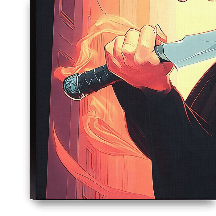 "Bladelit Glut" legt het moment voor de beweging vast - een evenwichtige elvenkrijger gehuld in stedelijk vuurlicht, haar ogen scherp en gefocust, haar zwaard fluisterend om wraak te nemen. Tegen een achtergrond van gloeiende wolkenkrabbers en hemelse vlammen combineert dit werk fantasie met modern design en roept het een wereld op waar…