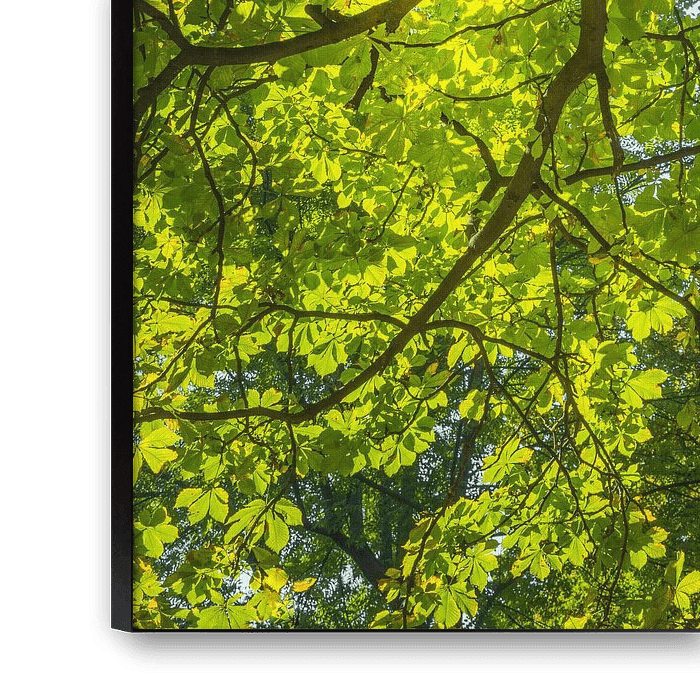 Het bladerdek of de kroon van de boom, mooi doorschijnend met het zonlicht.