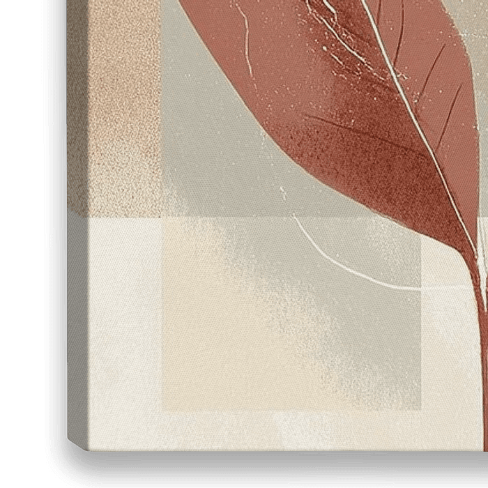 Bladeren Abstract - Dit is een botanisch schilderij met bladeren in aardetinten en geometrische vormen die een moderne en abstracte uitstraling geven, perfect voor een stijlvol interieur.
