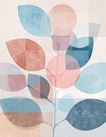 Bladeren Motief - Dit minimalistische schilderij toont een kleurrijk botanies ontwerp met bladeren in zachte tinten zoals lichtblauw en perzik, perfect voor een modern interieur.