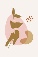 Organische vormen en bladeren in neutraal kleurenpalet.