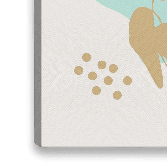 Organische vormen en bladeren in neutraal kleurenpalet.