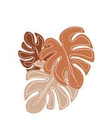 Abstracte minimalistische illustratie van drie grote bladeren in rode tinten. De achtergrond is wit.