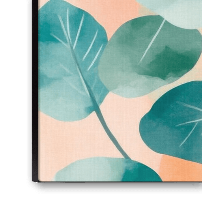 Zachte groene tinten versmelten met een warme, koraalkleurige achtergrond en creëren een rustgevende sfeer. De veelzijdige bladeren zien er levendig en fris uit, alsof ze dansen in de zachte bries. Deze decoratieve compositie is perfect voor de woonkamer of keuken om een vleugje natuur en gezelligheid toe te voegen.