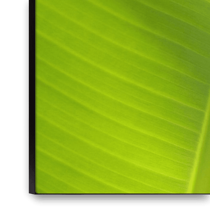 Een close-up van de bladeren van een Bananenplant. Van zo dichtbij bekeken komen de prachtige details van dit blad goed tot zijn recht.