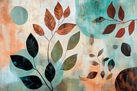 Zachte kleuren en gestileerde bladeren dansen harmonieus op het doek en brengen een vleugje natuur in elke kamer. De warme aardetinten en zachte aqua-elementen creëren een rustgevende sfeer, perfect voor een woonkamer of een creatieve hoek op kantoor. Een blikvanger die uitnodigt om te blijven hangen en inspiratie opwekt.