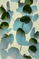 Ze liggen op een opgespannen vel kalkpapier. En omdat dat papier makkelijk licht doorlaat zie je deels ook de kleuren van de bladeren en deels zie je ook de lucht.