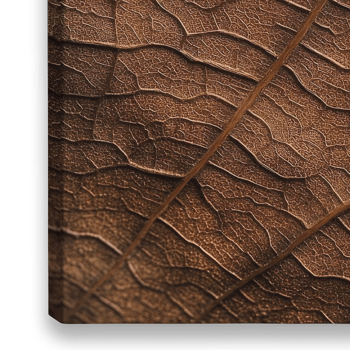 Een gedetailleerd blad ontvouwt zijn ruwe textuur in een fascinerend spel van licht en schaduw. De diepe aderen lopen over het bruinachtige oppervlak als verhalen van vervlogen tijden, terwijl fijne barsten en vouwen het verhaal van de tijd vertellen. Een harmonieuze combinatie van natuur en kunstwerk die de kijker uitnodigt om zich te…