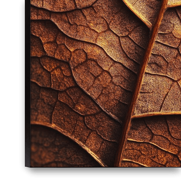 Een fascinerend patroon ontvouwt zich in aardebruine tinten, waar zachte nerven en fijne scheurtjes door het weefsel van een blad lopen. De textuur vertelt verhalen van zonnestralen en druipende regen, terwijl het oppervlak de tijd weerspiegelt in zijn verfijnde elegantie. Elk detail onthult de delicate kracht van de natuur en nodigt je…