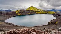 Panorama van spectaculaire kratermeer in IJsland. Hnausapollur (Bláhylur) of blauwe zwembad kratermeer. Fjallabak natuurreservaat. IJsland