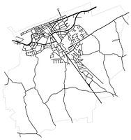Een minimalistische plattegrond met de hoofdwegen en omlijning van Blankenberge, West-Vlaanderen, België.