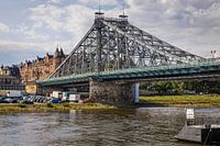 Oude metalen brug over de Elbe in de Duitse stad Dresden in de deelstaat Saksen.