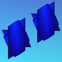 Ganz schlichte geometrische Formen, plastifiziertund schwebend angeordnet. Könnten zwei UFOs in Blautönen sein ...