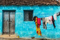 Orccha is een klein stadje in de Indiase deelstaat Madhya Pradesh. Je vindt er Moghul architectuur, mooie paleizen. tempels, Chattri's, tempel en kleurrijke straatjes. Hier een mooi bleuw geveltje.