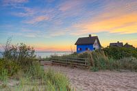 Zonsopgang bij het blauwe huis direct aan zee in Heiligenhafen Graswarder.