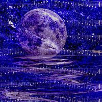 Blue Moon , Moonlight Serenade , melodie , bladmuziek , maan bezinning, water reflectie , nacht , heelal, kosmische ruimte , melkwegen , schilderen, collage, kunst, schoonheid , ruimte , notities, water , typografie , vierkant , kinderen Scene