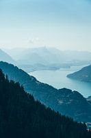 Een blauw meer, de Thunersee, in de Alpen in Zwitserland