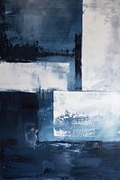 Blauw | Oceanic Echo - Dit abstracte schilderij toont een krachtig spel van blauwe en witte strepen, overlappend en contrasterend met gebieden van donkerblauwe en heldere witte vlekken, wat zorgt voor een dynamische en diepgaande visuele ervaring.