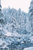 Koud blauw winters landschap in sneeuw met een rivier