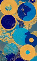 Een illustratie van diverse circles in de kleuren blauw en goud