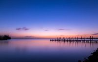 Blauw en oranje zonsondergang over de Westeinderplassen bij Aalsmeer/Amsterdam