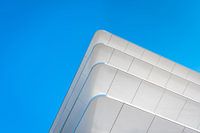 Hoek van een nieuw kantoorgebouw in Gouda. Mooi abstract en kleurrijk ondanks dat het maar twee kleuren zijn.