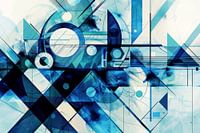 Dit kunstwerk betovert met een harmonieuze compositie van geometrische vormen en koele blauwe tinten. De kundige combinatie van cirkels, driehoeken en lijnen creëert een dynamisch maar rustgevend totaalbeeld. Dit kunstwerk is ideaal voor moderne woonruimtes, kantoren of galerieën en geeft elke kamer een stijlvolle en eigentijdse uitstraling. De koele kleuren en strakke lijnen maken het een perfecte blikvanger voor liefhebbers van moderne kunst.