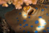 De blauwgestippelde pijlstaartrog, ook wel bekend als de blauwe pijlstaartrog, is een opvallende en kleurrijke soort die veel voorkomt in de wateren van de Rode Zee, met name rond de koraalriffen van Egypte. Deze rog is gemakkelijk te herkennen aan zijn prachtige, stippenpatroon dat op zijn gladde, blauwe huid te zien is. Dit unieke uiterlijk maakt de blauwgestippelde pijlstaartrog tot een favoriete attractie voor duikers en snorkelaars.