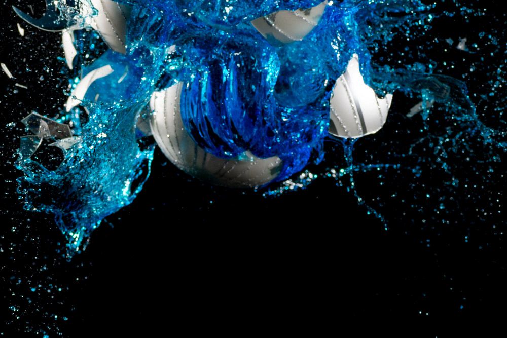 Blauwe kerstbal ontploft totaal . Fijne kerstdagen