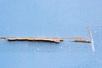 Deze abstracte kunstfoto toont een horizontale lijn van afbladderend materiaal tegen een zachtblauwe achtergrond. De compositie roept het beeld op van een verstild landschap: een horizon die zich scherp aftekent tussen lucht en aarde, of water en kust. Kleine korrels, scheuren en onregelmatigheden geven het oppervlak een tactiele…