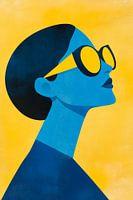 Het silhouet van een stijlvol figuur met een moderne twist rijst op in stralende gele tinten. Haar grote, ronde zonnebril weerspiegelt zelfvertrouwen en elegantie, terwijl de koele blauwe tinten harmonie en rust uitstralen. Dit kunststuk voegt een vleugje hedendaagse flair toe aan elke woonkamer en zal zeker bewonderende blikken trekken.