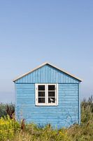 Dit kleine blauwe strandhuis is te vinden op Vesterstrand, nabij de plaats Æroskobing.