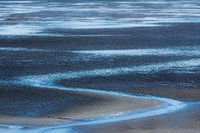 Deze opname heb ik gemaakt op de veerboot naar Ameland. Je ziet de Waddenzee. Door het laagtij zijn de zandplaten zichtbaar geworden. De weerspiegeling van de blauwe lucht kleurt het water blauw. De lijnen die hierdoor ontstaan geven een aantrekkelijk abstract beeld.