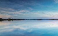 Een blauwe lucht en wolken weerspiegeld in een Zweeds meer. Deze foto is gemaakt tijdens onze vakantie in Zweden, net na zonsondergang (het blauwe uur). Door de lange sluitertijd is het water zo glad als een spiegel en wordt de lucht mooi weerspiegeld. De prachtige pasteltinten maken dit tot een fleurige afbeelding.