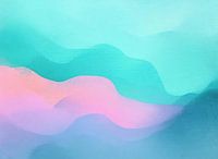 Details: abstract schilderij, kleurverloop, blauw, roze, rustgevend, golven, moderne kunst, visuele kunst, kalme kleuren, schilderkunst