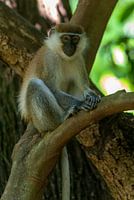 De vervet, Zuid-Afrikaanse groene meerkat of blauwaap (Chlorocebus pygerythrus) is een soort van het geslacht groene meerkatten (Chlorocebus). Van alle groene meerkatten heeft de vervet het grootste verspreidingsgebied, dat zich uitstrekt van Zuid-Afrika tot Ethiopië. Het is een algemene apensoort, die vaak in de buurt van nederzettingen te vinden is.De vervet is een zeer beweeglijke, slanke primaat met lange ledematen. De vacht is ruw en vrij lang. De rug en kroon zijn over het algemeen lichtgrijs met een olijfgroene gloed. De vachtkleur verschilt per regio. Zo hebben de dieren in Oost-Afrika een gelige zweem over het midden van de rug, terwijl de dieren in Mozambique een rode zweem hebben en de Zuid-Afrikaanse dieren donkergroen zijn. De borst en buik zijn wit, de onderste delen van de benen grijzig wit. De staart, die even lang is als de rest van het lichaam, is grijzig met een zwarte punt. Het korte haar op de handen en voeten is zwart van kleur. Het gezicht is eveneens zwart, net als de kleine oren. Rondom het gezicht, van de wangen tot de wenkbrauwboog, loopt een witte vachtkring. De ogen zijn donkerbruin van kleur. Haarpluimen rond de anus en staartwortel zijn roodbruin.