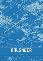 Blauwdruk van de landkaart / plattegrond van de Nederlandse plaats Aalsmeer, gelegen in gemeente Aalsmeer, provincie Noord-Holland. De kaart bevat alle openbare wegen en de coördinaten van het centrum van Aalsmeer.