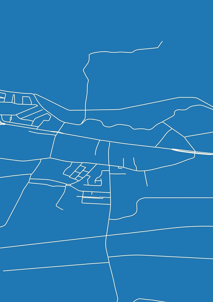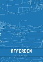 Blauwdruk van de landkaart / plattegrond van de Nederlandse plaats Afferden, gelegen in regio Rivierenland, in gemeente Druten, provincie Gelderland. De kaart bevat alle openbare wegen en de coördinaten van het centrum van Afferden.