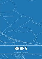 Blauwdruk van de landkaart / plattegrond van de Nederlandse plaats Baars, gelegen in gemeente Steenwijkerland, provincie Overijssel. De kaart bevat alle openbare wegen en de coördinaten van het centrum van Baars.