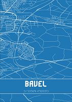 Blauwdruk van de landkaart / plattegrond van de Nederlandse plaats Bavel, gelegen in gemeente Breda, provincie Noord-Brabant. De kaart bevat alle openbare wegen en de coördinaten van het centrum van Bavel.