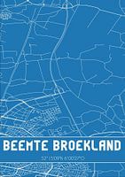 Blauwdruk van de landkaart / plattegrond van de Nederlandse plaats Beemte Broekland, gelegen op de Veluwe, in gemeente Apeldoorn, provincie Gelderland. De kaart bevat alle openbare wegen en de coördinaten van het centrum van Beemte Broekland.