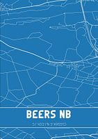 Blauwdruk van de landkaart / plattegrond van de Nederlandse plaats Beers NB, gelegen in gemeente Cuijk, provincie Noord-Brabant. De kaart bevat alle openbare wegen en de coördinaten van het centrum van Beers NB.