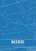 Blauwdruk van de landkaart / plattegrond van de Nederlandse plaats Beerze, gelegen in gemeente Ommen, provincie Overijssel. De kaart bevat alle openbare wegen en de coördinaten van het centrum van Beerze.