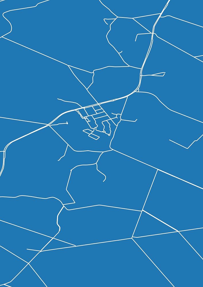 Blauwdruk van de landkaart / plattegrond van de Nederlandse plaats Bentelo, gelegen in Twente, in gemeente Hof van Twente, provincie Overijssel. De kaart bevat alle openbare wegen en de coördinaten van het centrum van Bentelo.