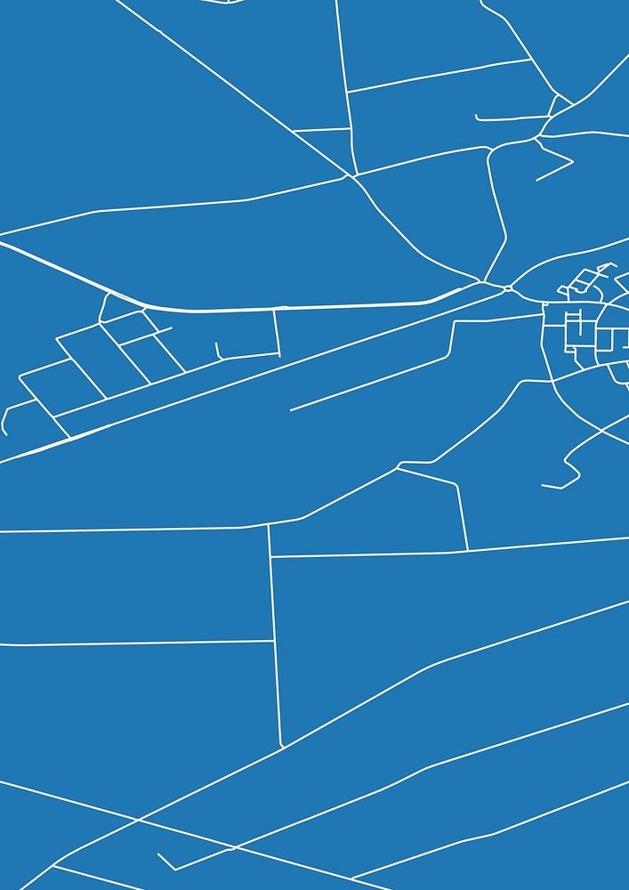 Blauwdruk van de landkaart / plattegrond van de Nederlandse plaats Beringe, gelegen in gemeente Peel en Maas, provincie Limburg. De kaart bevat alle openbare wegen en de coördinaten van het centrum van Beringe.