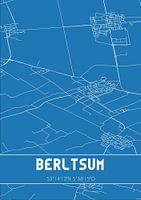 Blauwdruk van de landkaart / plattegrond van de Nederlandse plaats Berltsum, gelegen in gemeente Waadhoeke, provincie Fryslan. De kaart bevat alle openbare wegen en de coördinaten van het centrum van Berltsum.