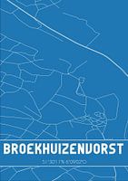 Blauwdruk van de landkaart / plattegrond van de Nederlandse plaats Broekhuizenvorst, gelegen in gemeente Horst aan de Maas, provincie Limburg. De kaart bevat alle openbare wegen en de coördinaten van het centrum van Broekhuizenvorst.