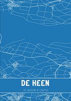 Blauwdruk van de landkaart / plattegrond van de Nederlandse plaats De Heen, gelegen in gemeente Steenbergen, provincie Noord-Brabant. De kaart bevat alle openbare wegen en de coördinaten van het centrum van De Heen.